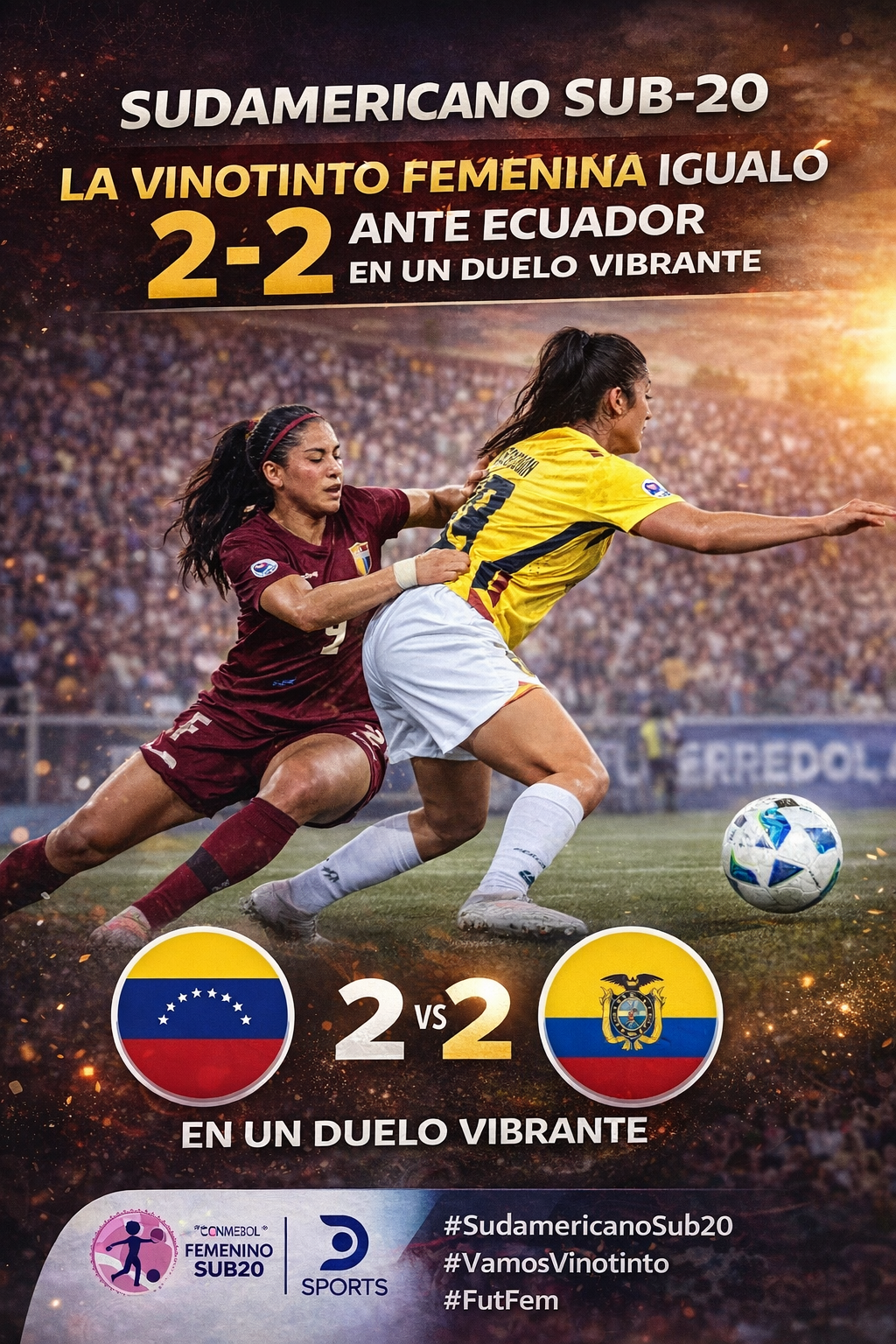En un partido cargado de intensidad y emociones, la selección femenina Sub-20 de Venezuela empató 2-2 frente a Ecuador en su tercer compromiso de la fase final del Sudamericano Sub-20.