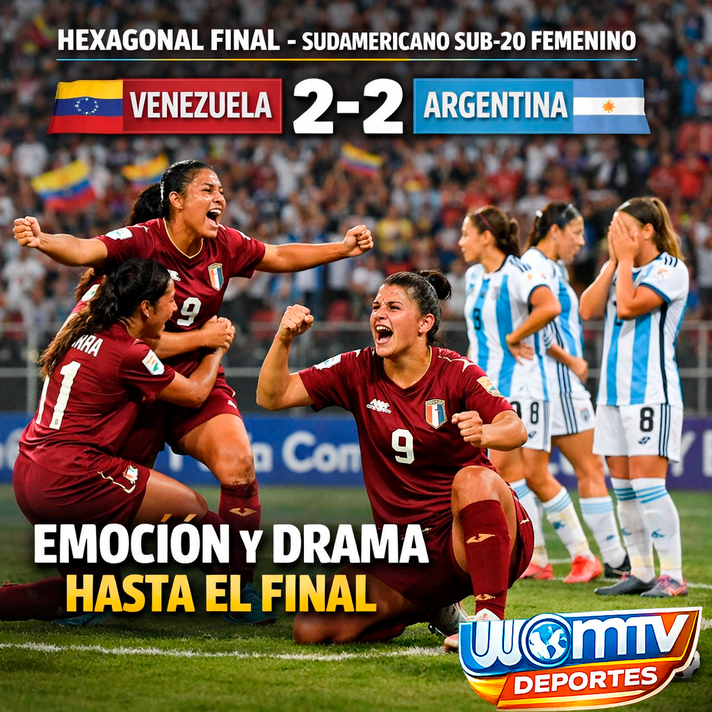 El hexagonal final del Sudamericano Sub-20 Femenino de Fútbol comenzó con un partido cargado de emociones entre las selecciones de Venezuela y Argentina, que terminaron igualando 2-2 en un encuentro intenso, cambiante y con un cierre dramático que dejó claro que esta fase definitiva será una verdadera batalla por los cupos al Mundial.